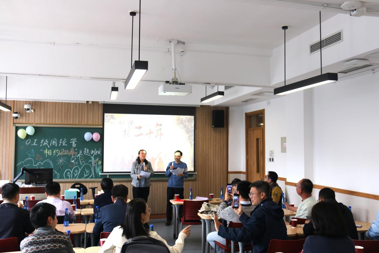廿载情依旧,同心续华章。下午2:00,3044am永利集团3044noc2001级国民经济管理班在学院南路校区主教409教室举办"相约20年"班会。活动开始时,一部精心剪辑的短视频串联起课堂剪影、运动会瞬间、毕业典礼等珍贵记忆,引发现场阵阵掌声。当镜头切换至未能到场的校友寄语时,电子相册中滚动播放的语音留言和祝福视频,让现场气氛愈发温情。在"时光邮局"环节,校友们分享了自己的近况,从金融精英到人民教师,从海外游子到基层工作者,这些多元的人生轨迹在20年的光阴里交织出绚丽的图景。在互动环节,校友们将"宏观经济学""校门口菜地"等校园元素融入你画我猜,让大家回忆起了欢乐的校园生活。